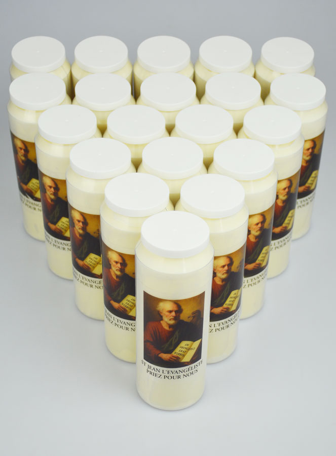 20 Velas de Novena a San Juan Evangelista, esta vela de novena te permitirá recitar tu novena durante 9 días. Reza a San Juan Evangelista si buscas su intercesión para comprender mejor la Palabra de Dios, profundizar tu fe o pedir protección espiritual. A San Juan, considerado “el discípulo amado” de Jesús, también se le reza para pedirle gracias relacionadas con la sabiduría divina, el amor puro, la fidelidad a Jesús y la inspiración en escritos o enseñanzas religiosas. Velas de novena 100% vegetales, de duración de 9-10 días cada una.
