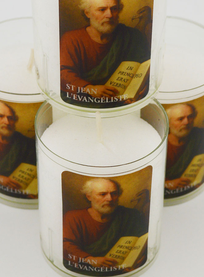 4 velones de San Juan Evangelista, el “discípulo amado” de Jesús, para profundizar en la comprensión de la palabra de Dios. Cada vela arde durante al menos 20 horas. Fabricado en Francia, lote de 4.