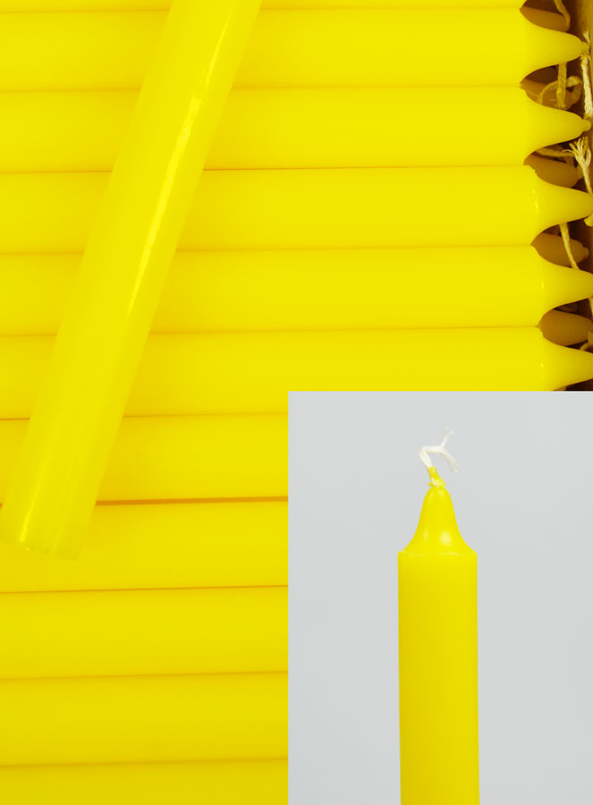Caja 130 Velas Cirios Amarillos, este lote de cirios de oración están tintados en la masa y no gotean. Miden 20 cm. Fabricación Francesa.