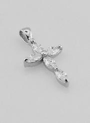 Colgante Cruz 5 Diamantes Estrás y Plata 18 mm