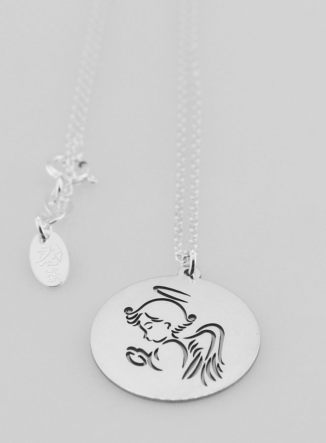 Collar Religioso en Plata - Ángel Calado, este impresionante collar de plata maciza 925/1000 está compuesto por una cadena de eslabones forzados de 42 cm de longitud y una medalla de 20 mm de diámetro con un ángel calado. Un conjunto elegante, moderno y refinado, hecho en Francia, diseñado y fabricado por nuestro joyero francés asociado.