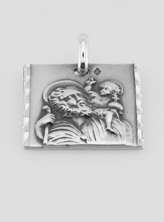 Medalla San Cristóbal Facetada Cuadrada de Plata 925/1000 - 20 mm |