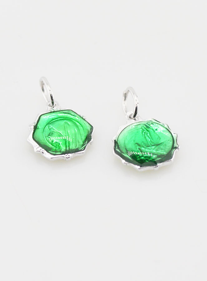 Medalla Virgen María 11mm - Verde, esta hermosa medalla está hecha de metal plateado, 11mm.