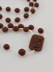 Rosario Marrón, 40 cm, de granos de plástico montados en cordón.