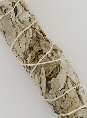 Salvia Blanca de California - Manojo de 60-80 g. Este aderezo 100 % natural está hecho de salvia blanca (Salvia apiana) atada a mano y pesa aproximadamente entre 60 y 80 g. La salvia blanca se utiliza para purificar lugares y objetos actuando sobre las energías negativas. Dimensiones aproximadas: 15 cm de largo, 35 mm de diámetro. Uso: Encender el extremo del atado, dejar que la llama se apague para que humee y luego distribuir el humo alrededor del espacio u objeto a purificar. Mantener una ventana abierta para que las energías escapen.