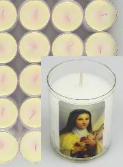 24 Velones Santa Teresa de Lisieux, cada velón de iglesia dura 20h como mínimo. A la imagen de Santa Teresa de Lisieux. Fabricación Francesa lote de 24.