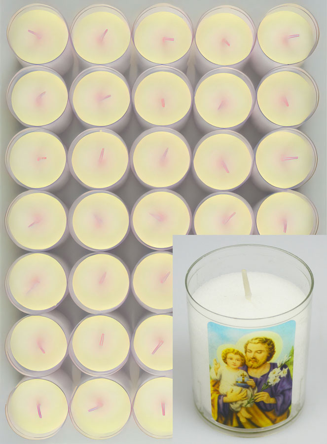 48 Velones San José, cada velón de iglesia dura 20h como mínimo. A la imagen de San Expedito. Fabricación Francesa lote de 48.