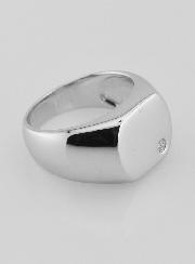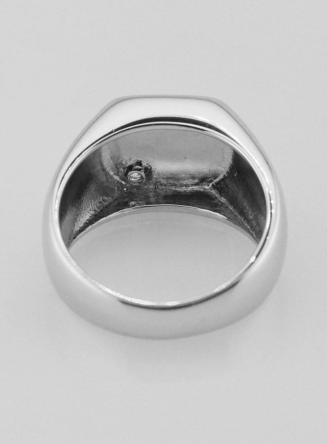 Anillo sello en plata maciza - Talla 56, Este magnífico anillo tipo sello, adornado con un zirconio, está hecho de plata maciza 925/1000. Una creación francesa de gran calidad, entregada en su bolsita de regalo de ante.