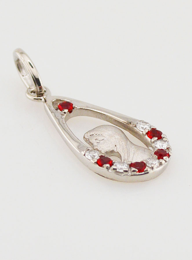 Colgante Gota de la Virgen María - Plata y Zirconio Rojo, este bonito colgante está hecho de plata 925/1000 y diamantes de imitación (óxidos de Zirconio rojo y blanco), mide 24 mm.