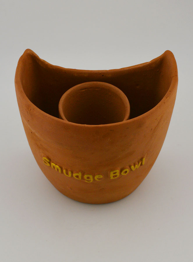 Cuenco de Fumigación para incienso en Barro Cocido. Este quemador está diseñado para quemar de forma segura manojos de salvia (u otras hierbas). Diámetro: 11 cm, altura: 10 cm.