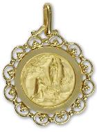 Medalla Calada Virgen de Lourdes Chapada en Oro, esta preciosa medalla está chapada en oro 18 kilates. Mide 25 mm, fabricación artesanal de Lourdes.